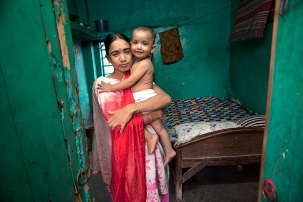 27-летняя Лабоне, которая работает в борделе одного из районов Бангладеша, держит на руках годовалого сына, рожденного от клиента.