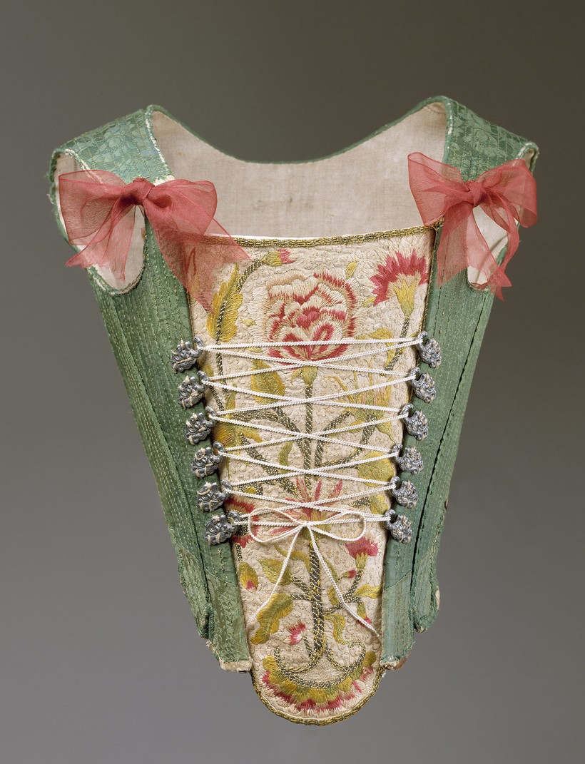 Корсет же впервые появился в Бургундии. Именно там дамы стали использовать специальные вставки, стальные или деревянные пластинки, а также железные прутья. С 17 века их заменил китовый ус. Шнуроваться можно было с разных сторон. Чаще предпочитали заднюю шнуровку.