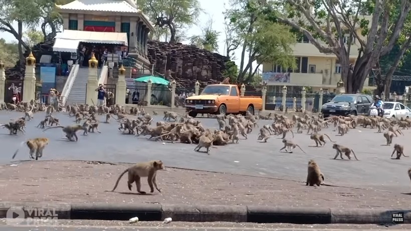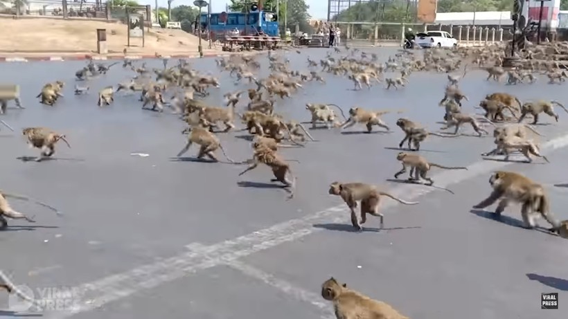 Но коронавирус смел не только все продукты с полок магазинов, но и туристов из Таиланда. Лопбури лишился 2/3 туристов, в результате чего продавцы сувенирных лавок сражаются за любого путешественника, снижая цены, а обезьяны — за каждый кусок еды, выпавший из рук. Так, в ролике видно, как сотни голодных приматов мечутся по площадям города и борются за еду. Когда у одной из обезьян в руке оказался банан, то вся стая набросилась на нее, чтобы отнять еду. Когда другой примат выхватил банан и сбежал с ним, то остальные бросились вдогонку.