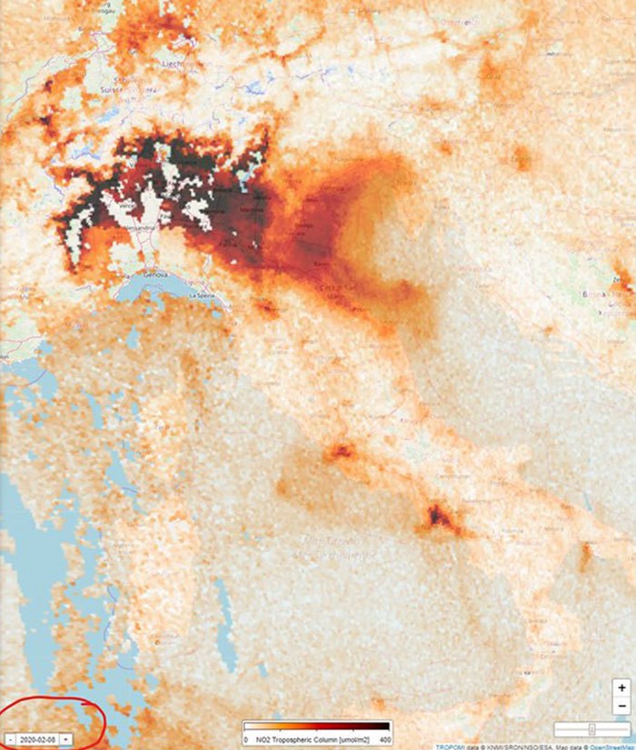 Согласно информации Европейского космического агентства, а также данным многих ученых, эмиссия диоксида азота на территории Италии сократилась в разы после введения на территории страны строжайшего карантина. Спутники зафиксировали существенное уменьшение выбросов NO2 и, соответственно, загрязнения воздуха. Разница особенно заметна в северной части страны, которая изначально больше других пострадала от вируса.