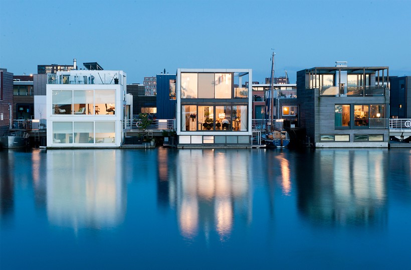 Плавучие дома строятся в специально созданных для этого лагунах или бетонных бассейнах. В целях безопасности и во избежание столкновения с соседями все строения прочно закреплены железными тросами.