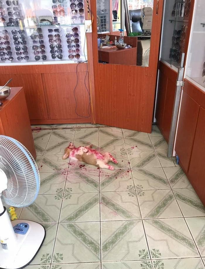 Правда, сотрудники, которые увидели сцену, очень сильно испугались: пес спал в необычной для собаки позе, еще и весь измазанный чем-то красным. В том, что у них чуть не случился сердечный приступ при виде фотографии, признались и пользователи сети. К счастью, пушистого преступника успешно разбудили и показали его довольную мордашку, измазанную джемом.