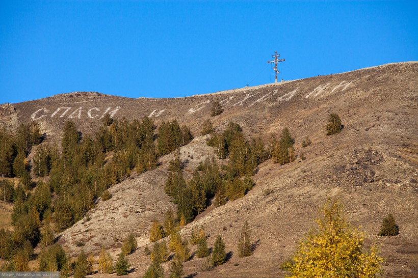 Белыми камнями жители выложили фразу «Спаси и сохрани». Весьма символично для подобного города.