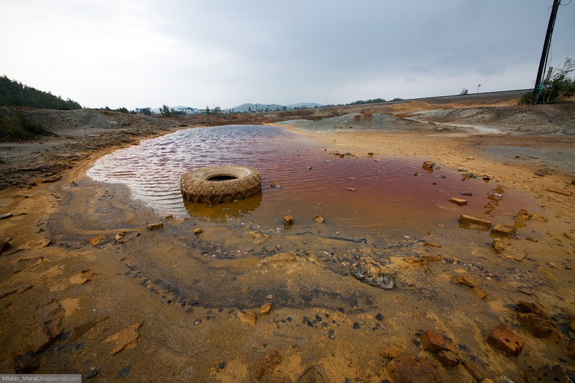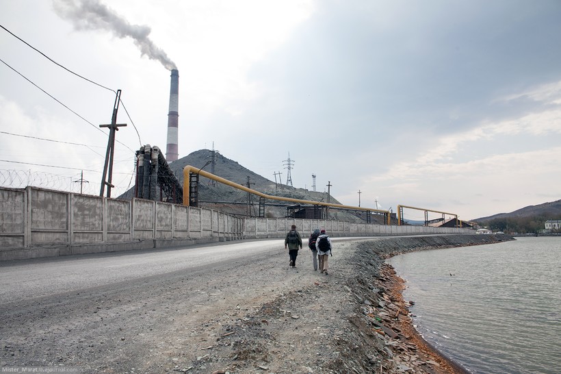 Далее случилась неприятность: Гоша по иронии судьбы потерял флеш-карту, и мы вернулись сюда на следующий день. К нашему удивлению, застали солнечную погоду. Карабаш заметно преобразился и стал чуть более приветливым.