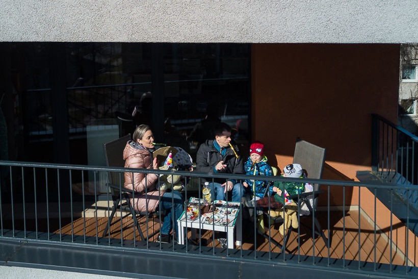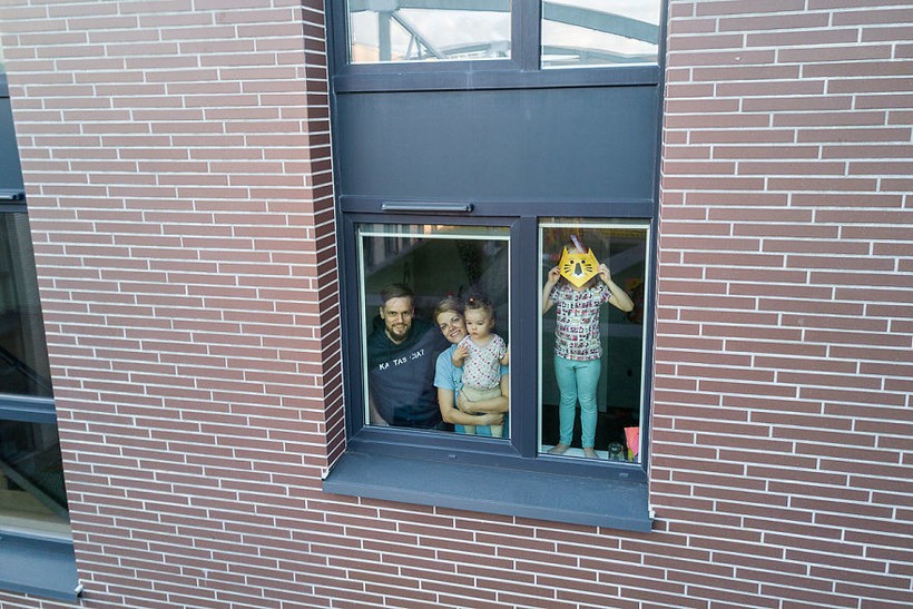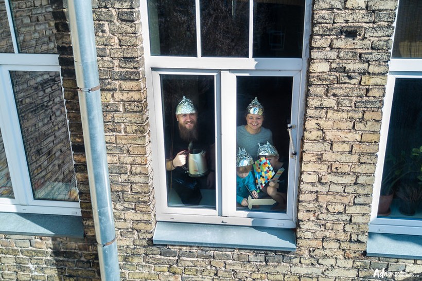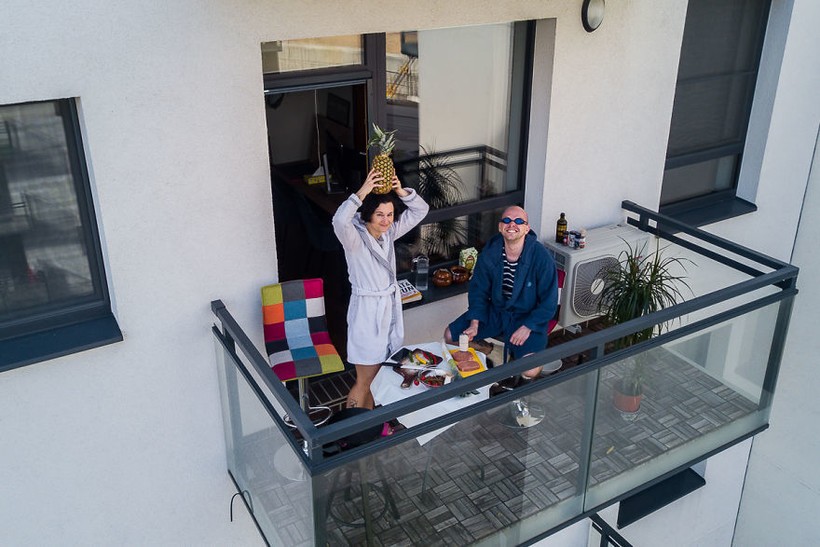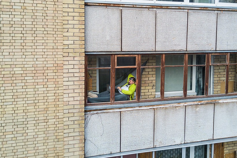 Фотограф Адас Василяускас придумал, как продолжать снимать людей, не нарушая режим изоляции и соблюдая стопроцентно безопасную дистанцию. Он взял свой беспилотник и принялся фотографировать людей в их домах — на террасах и через окна. При нулевом контакте с героями своей съемки Василяускас запечатлел, как люди пытаются не сойти с ума на карантине. Каждый придумывает свой способ справиться с давлением четырех стен и разлукой с любимыми.