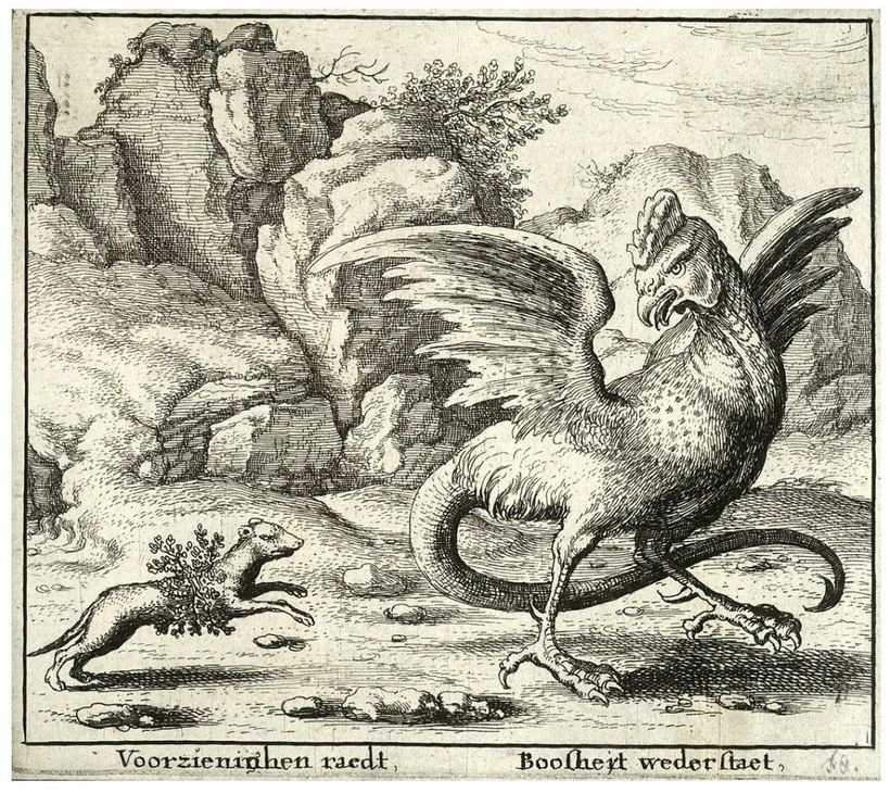 У средневековых Испании и Франции был свой герой — василиск. Его происхождение было весьма необычно: помесь змеи и петуха, вылупившаяся из яйца, отложенного в навозной куче и насиженного жабой. Хуже не придумаешь. Чудовище обладало смертоносным взглядом и дышало огнем.