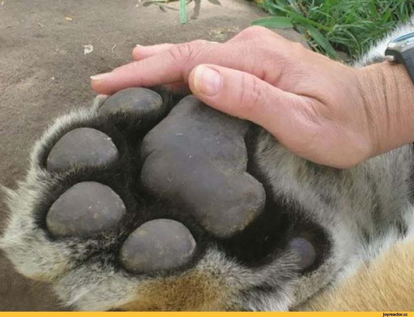 Человек в сравнении со многими обитателями дикой природы проигрывает в размерах. Лапа льва и рука обыкновенного человека подтверждают этот факт.