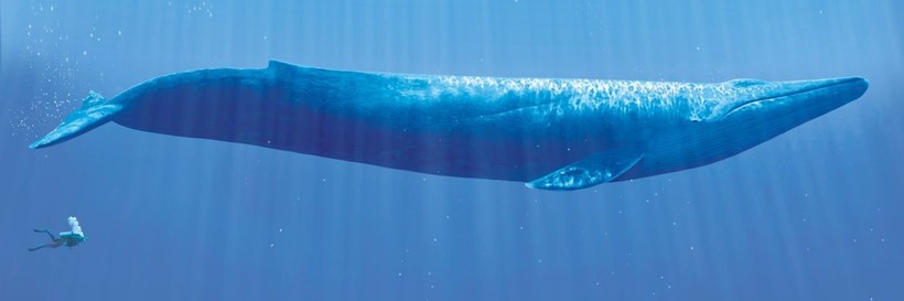 Морским обитателям тоже есть чем похвастаться. Синий кит — гигант по сравнению с дайвером, смело покоряющим морские глубины.