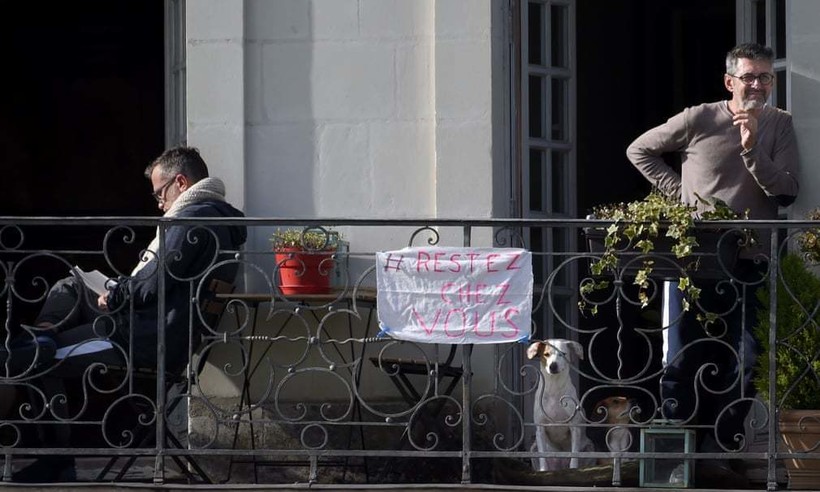 Парижане аплодируют на балконах, чтобы поддержать медперсонал.