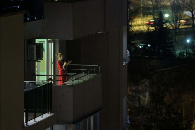 Девушка аплодирует медикам, которые борются с вирусом. Таким флешмобом жители поддержали медперсонал в Болгарии.