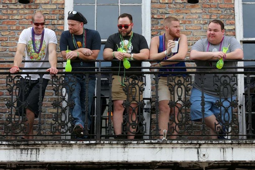 Туристы в заточении на балконе. Новый Орлеан, США.