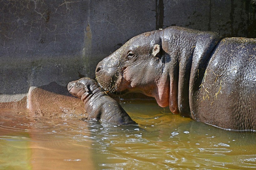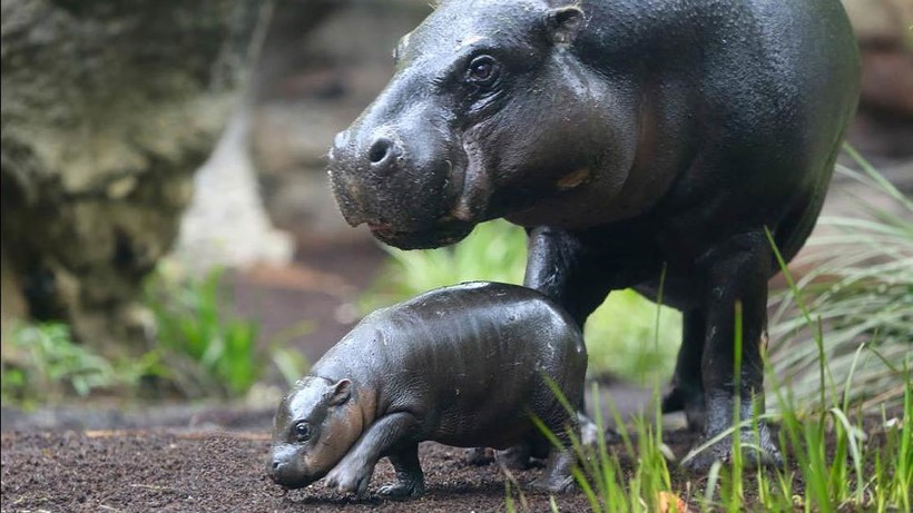 Бегемотов нельзя отнести к дружелюбным и мирным животным. Несмотря на то, что они травоядные, не всякий хищник осмелится приблизиться к ним. Обитатели африканских водоемов агрессивны, сильны и могут за себя постоять. Тем не менее, оказывается, у них есть малоизвестные родственники — карликовые бегемоты, которые совсем не похожи на своих крупных сородичей. Уменьшение размеров сказалось на их характере — бегемотики дружелюбны, а в случае появления хищников спасаются бегством.
