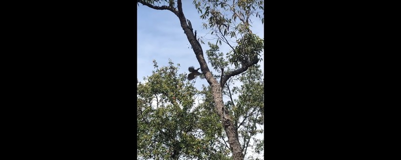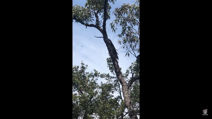 В заповеднике Нового Южного Уэльса приезжие туристы часто встречают этих огромных ящериц в их естественной среде обитания. Один из путешественников сумел снять на камеру одного из варанов, ловко забравшегося на крону дерева, чтобы полакомиться птичьими яйцами. В видеоролике видно, как птицы пытаются бороться с хищником за свое гнездо, но все попытки отбить потомство оказываются безуспешными. Сытый и довольный варан спешно покидает дерево, спускаясь по стволу обратно на землю.