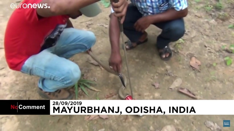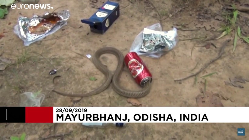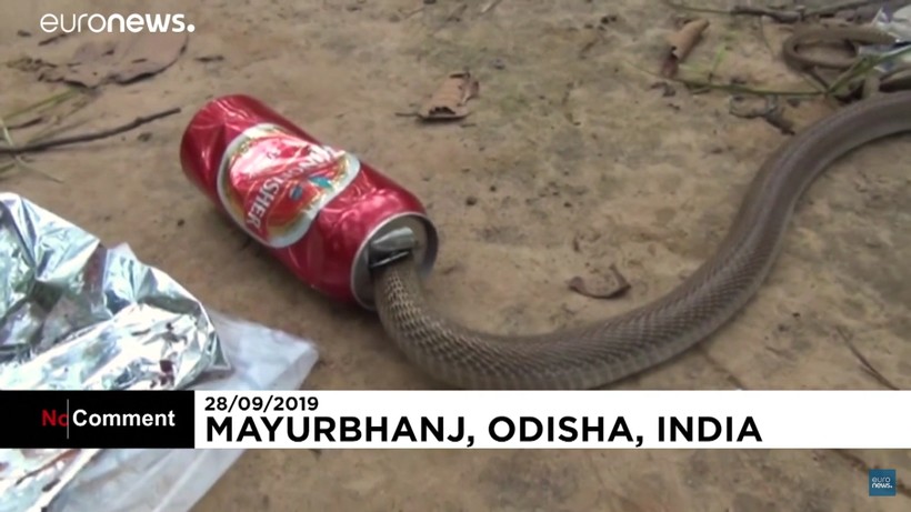 Дикие животные часто попадают в «неспециальные» ловушки, разбросанные нерадивыми туристами и местными любителями пикников. Они застревают в консервных банках, пластиковых бутылках и канистрах. Порой такой плен стоит зверю жизни. Но наш мир не без добряков, которые готовы помочь даже смертельно опасному существу, как случилось в Индии, штате Одиша. Двое мужчин шли через лес. На тропе были разбросаны пакеты, коробки и банки. Мужчина заметил, что возле пустой банки пива лежит змея и не двигается. Лишь подойдя ближе, человек понял, в чем дело — голова рептилии застряла в пивной банке, и она не могла ее вынуть, лишь тяжело дышала.