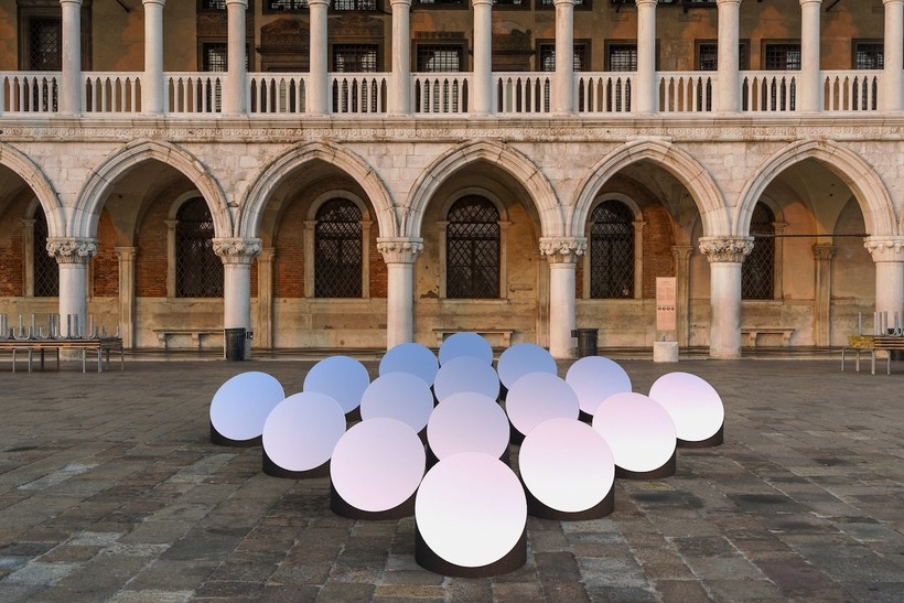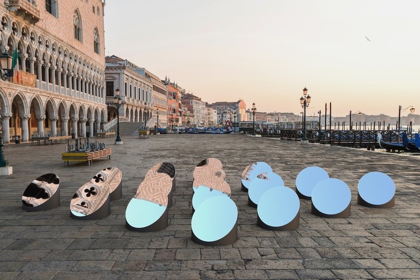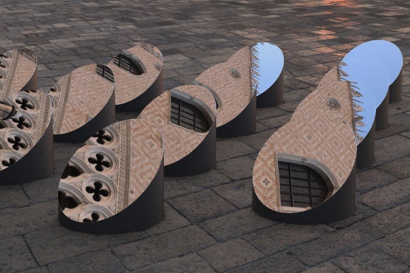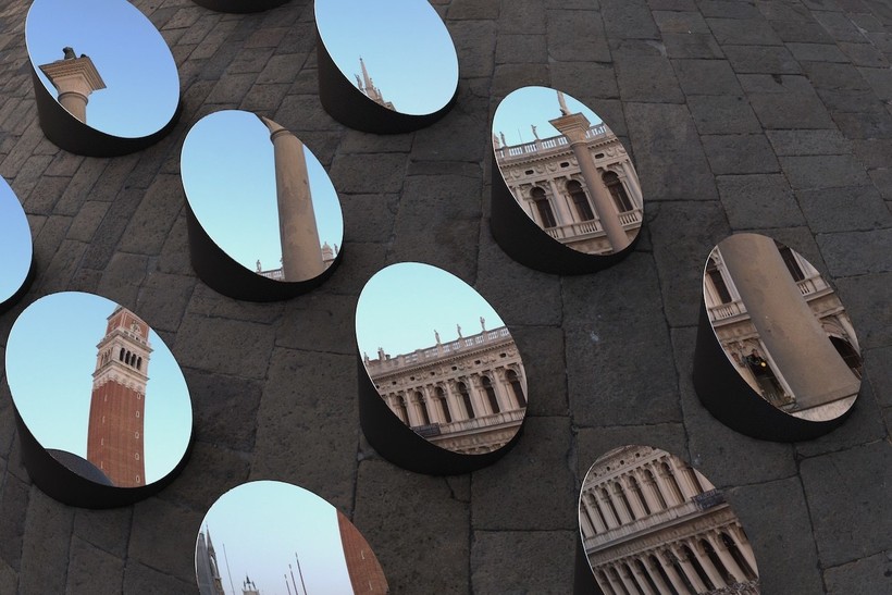 Стремясь изменить наше видение знакомой старинной архитектуры, французский дизайнер Арно Лапьер создал движущуюся художественную инсталляцию в самом сердце Венеции. Используя 16 круглых зеркал, которые медленно и синхронно вращаются вокруг своей оси, художник подарил новый взгляд на самые известные здания города. Его творение производит неизгладимое впечатление, искажая ощущение пространства и габаритов.