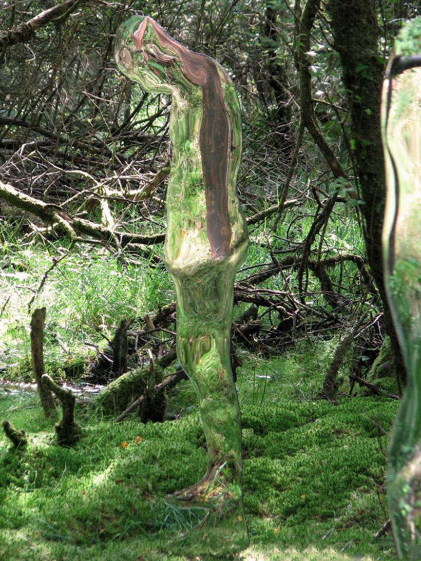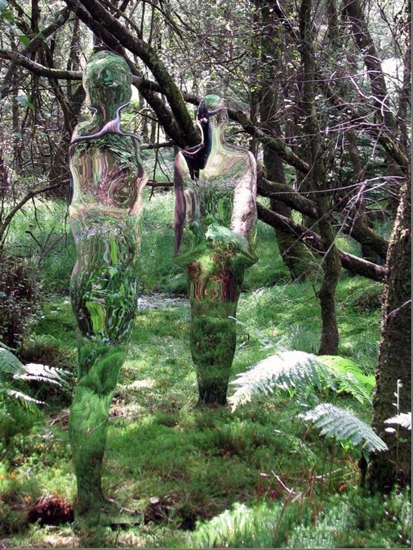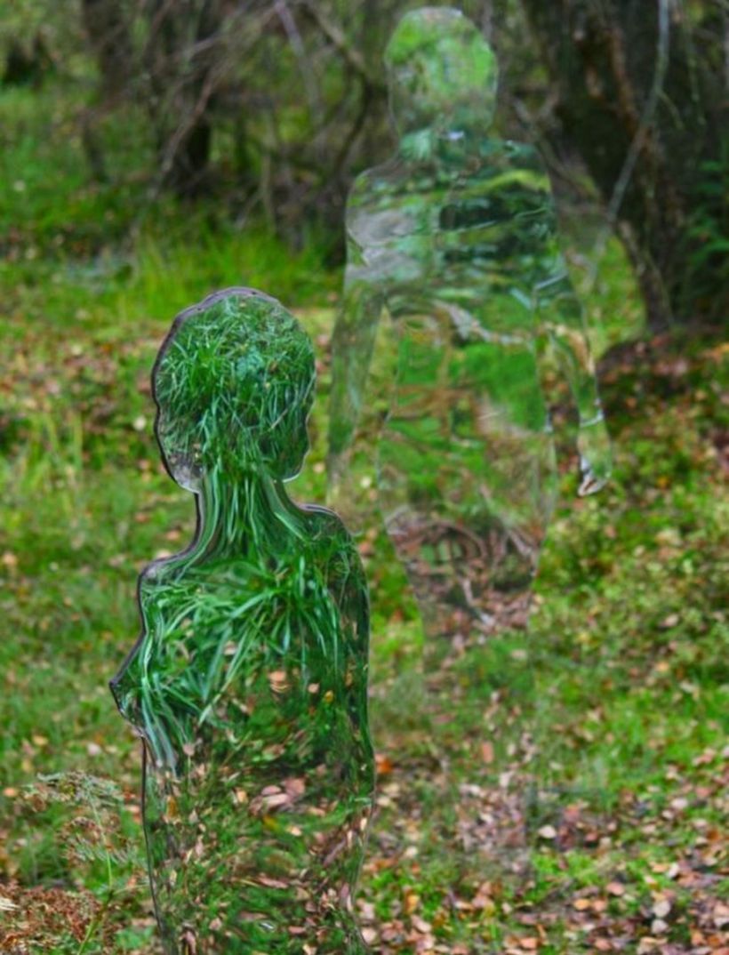 Шотландца Роба Малхолланда называют скульптором, создающим призраков. Дело в том, что он вырезает человеческие фигуры из прозрачного материала. Стекло преломляет в себе солнечные лучи и искажает пространство, придавая скульптурам своеобразный эффект невидимости. Пожалуй, встреча с его работами, расставленными среди леса, у неподготовленного человека может вызвать настоящий приступ паники.