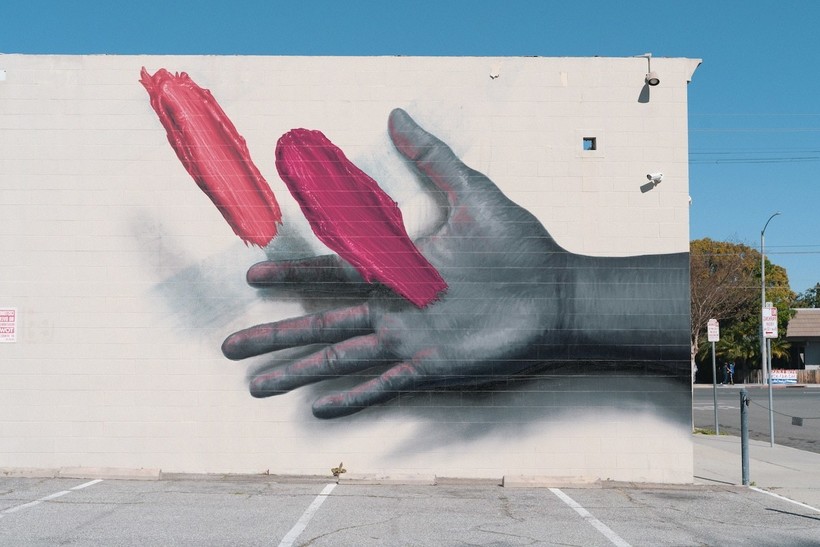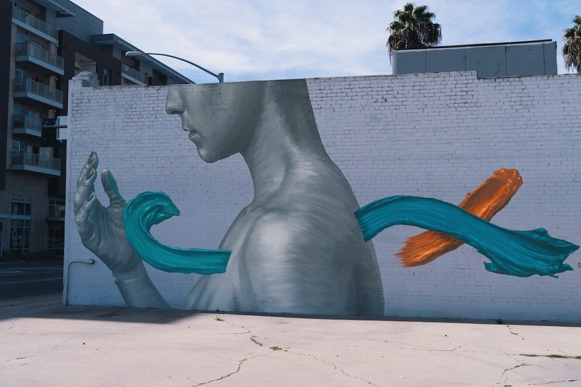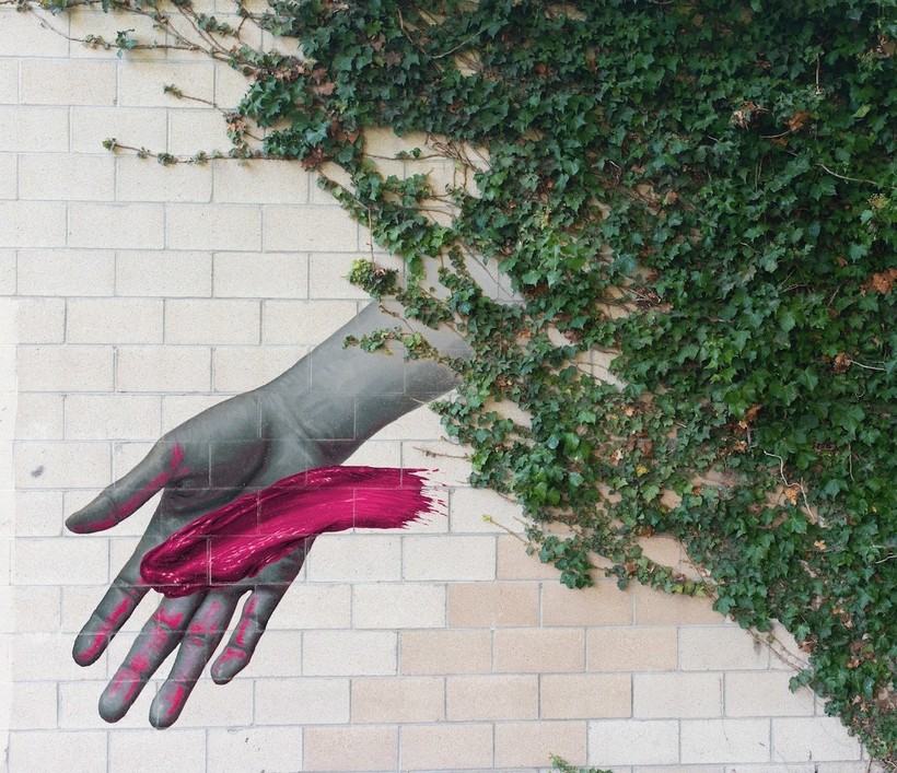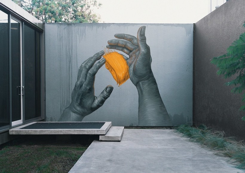 Гавайский уличный художник Шон Йоро в своей новой серии муралов Undertones сочетает монохромные изображения рук и торсов с сочными, иллюзионистскими мазками краски. Эти густые яркие мазки кажутся совершенно отдельными, самостоятельными элементами. Парящие в пространстве, они обеспечивают всплеск цвета на монотонных кирпичных и цементных стенах.