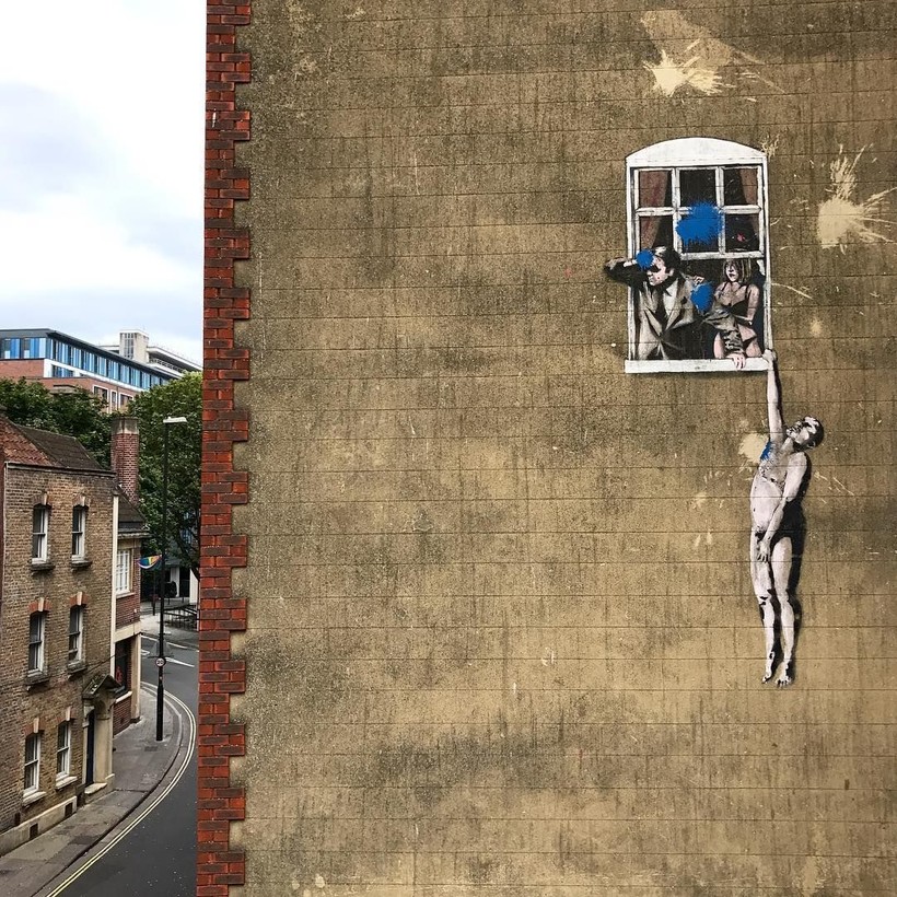 Граффити Well Hung Lover находятся в Бристоле, а название переводится как «Хорошо висящий любовник». На них запечатлен мужчина, который пытается скрыть следы своего пребывания у возлюбленной. Неожиданно вернувшийся муж ― одна из популярных тем для анекдотов по всему миру, которые в современном мире превратились в интернет-мемы.
