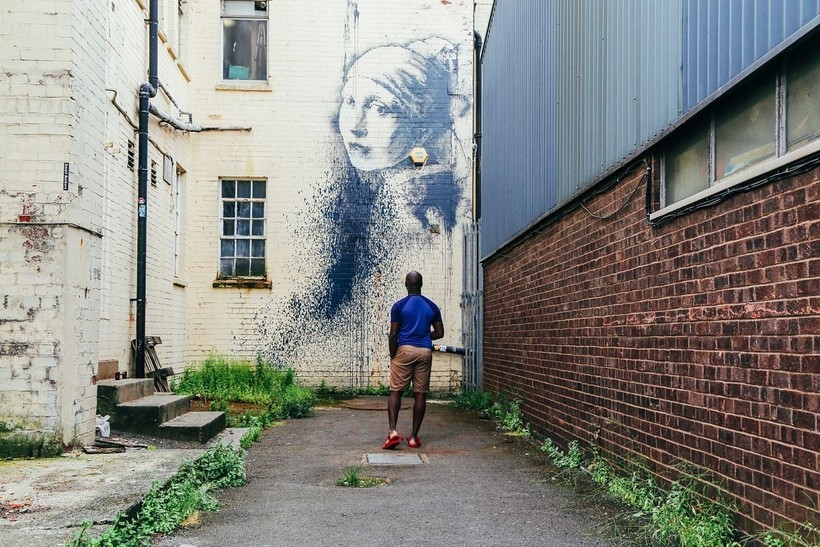 Бэнкси пересмотрел классическое полотно Яна Вермеера «Девушка с жемчужной сережкой», придав ему более современный вид: у него получилась «Девушка с проколотой барабанной перепонкой». Художник прекрасно вписал картину в городской ландшафт, используя оборудование на стене и превратив его в аксессуар.