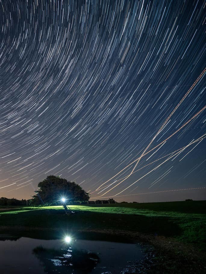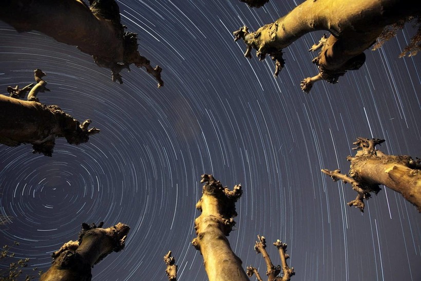Круги на фото ― это следы от звезд. Звезды на самом деле неподвижны, движется Земля. От вращения нашей планеты появляются такие светящиеся полосы. Обычно следы постоянно прерываются из-за того, что в небе летают самолеты. Фотографы очень долго обрабатывают свои работы, чтобы удалить эти разрывы. Но сейчас совершенно другое время, самолетов в небе нет. И если обычно на обработку фотографии уходило достаточно много времени, так как надо было убрать следы примерно от тридцати лайнеров, сейчас это количество уменьшилось весьма ощутимо: чаще всего в кадре заметен только один самолет, а может, и вообще их нет. Некоторые фотографы специально путешествовали по миру, чтобы найти чистое звездное небо. Но сегодня для этого никуда не надо ехать, достаточно просто выйти из дома или вообще поставить фотоаппарат возле окна.