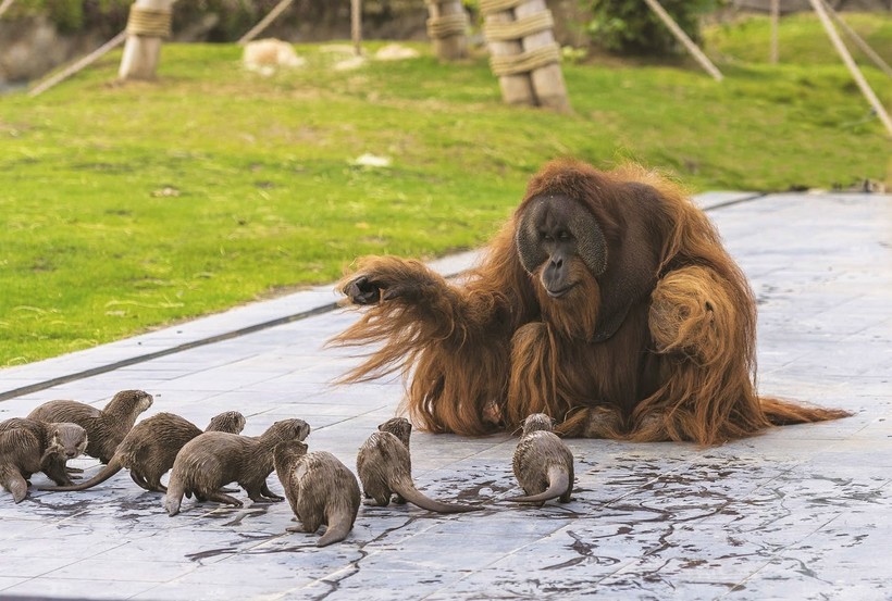 Иногда животные, которые обитают по соседству в зоопарках, заводят дружбу, несмотря на то, что они относятся к разным видам. В бельгийском зоопарке «Пайри Дайза» было несколько таких историй: пингвины дружили с тюленями, буйволы — с зебрами, обезьяны-колобусы — с гориллами. Но сейчас сотрудники ботанического сада наблюдают, пожалуй, за самой удивительной дружбой: семья орангутанов подружилась с выдрами.