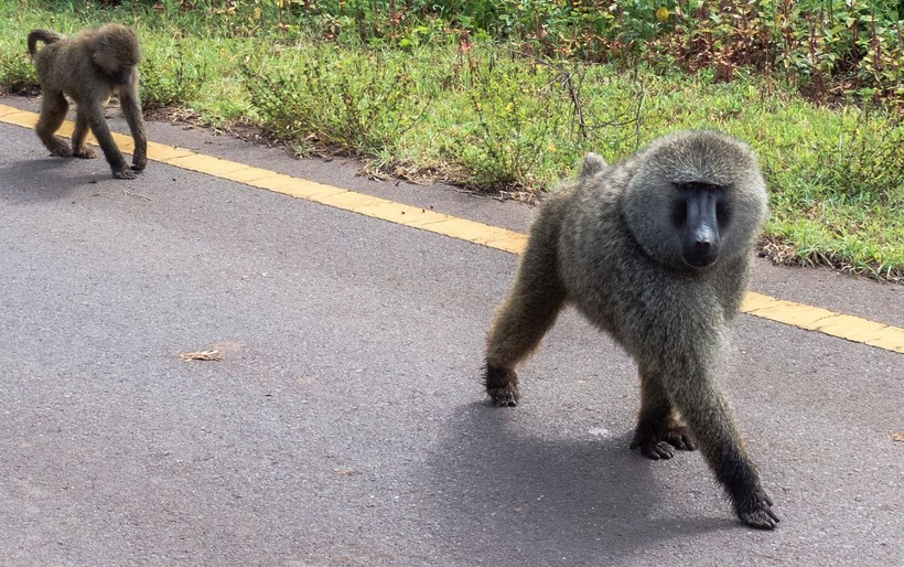 Поля поспевающей кукурузы и плантации овощей регулярно подвергаются набегам бабуинов. Эти приматы ведут себя очень нагло и по отношению к главным хищникам Африки — львам и леопардам. Группа бабуинов может похитить львят из прайда или убить леопарда, ели им покажется, что он угрожает детенышам. Львицы, пожалуй, единственные, кто может их остановить, но лишь в случае достаточного количества — с одной-двумя самками они легко справятся и если не убьют, то заставят их ретироваться.