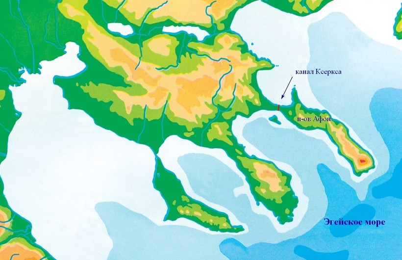 Упоминания об этом грандиозном канале долгое время считали выдумкой Геродота. Согласно древним текстам, персы под предводительством царя Ксеркса прорыли канал через полуостров Афон, для того чтобы обезопасить и ускорить продвижение своего флота. Но историки долго не могли в это поверить, ведь строительство столь серьезного гидротехнического сооружения при наличии довольно примитивной техники требовало невероятных усилий. Все сомнения развеялись после того, как в 90-х годах XX века археологи обнаружили следы канала и смогли доказать, что он действительно существовал.