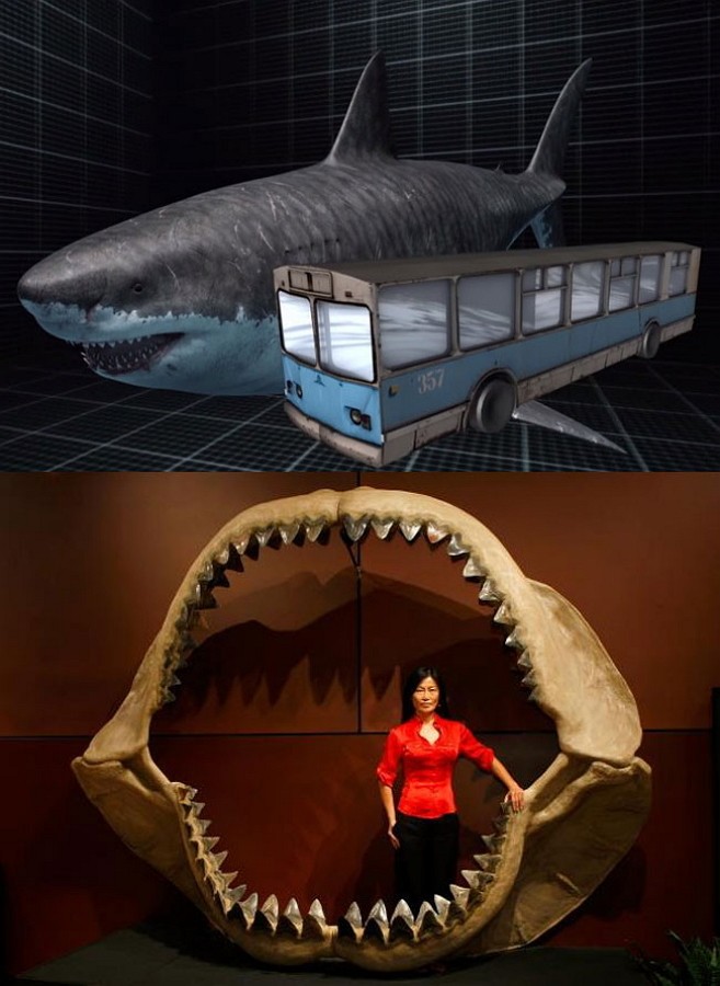 В настоящий момент создано несколько макетов челюстей мегалодона. В них спокойно помещается пара людей. Таким образом, мегалодон мог заглотить человека целиком. Так что будем считать, что нам крайне повезло жить в разные времена с этим хищником. Впрочем, автор ролика, представленного ниже, попытался вообразить, что было бы, случись все иначе.