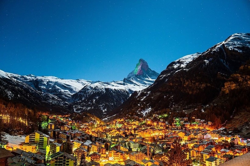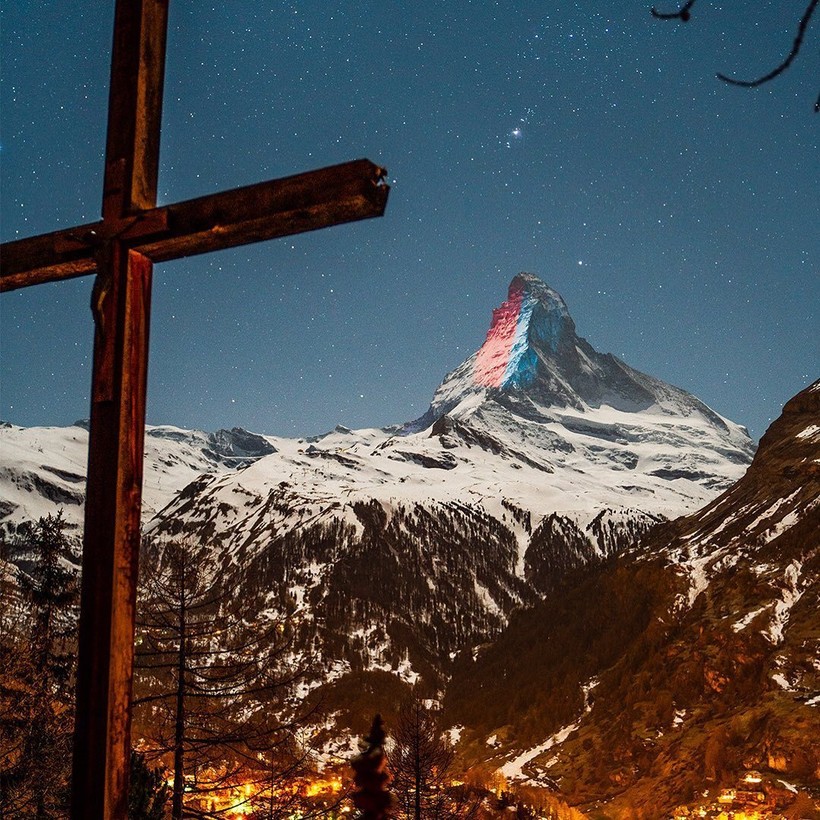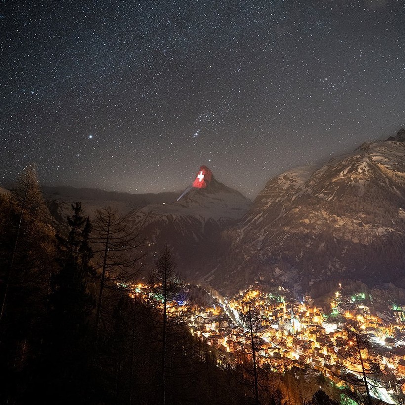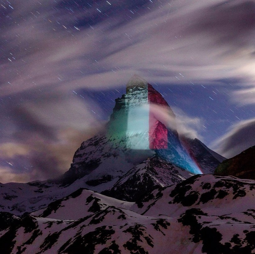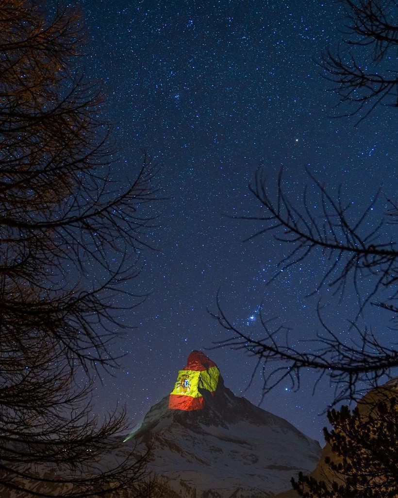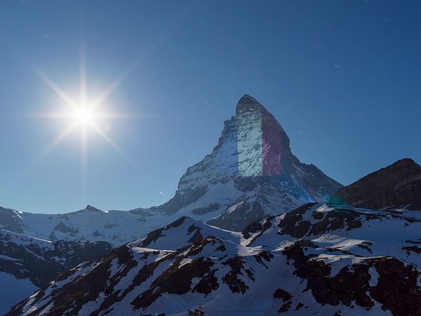 Вместо того, чтобы поднимать флаги на флагштоке, Швейцария отдает дань уважения другим странам мира, борющимся с COVID-19, проецируя флаги государств на Маттерхорн — самую знаменитую и культовую гору Альп. Проектом руководит швейцарский художник по свету Джеффри Хофштеттер. Он разработал схему освещения пирамидального пика горы высотой 4478 метров, простирающейся между Швейцарией и Италией. Каждую ночь на вершине появляется впечатляющее изображение флагов разных стран, борющихся со смертельной инфекцией, и подбадривающие слова для них.