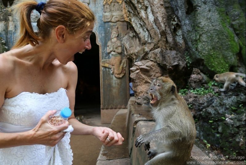 В храме обезьян в Таиланде. Они оба работают, поэтому времени для путешествий не так много.