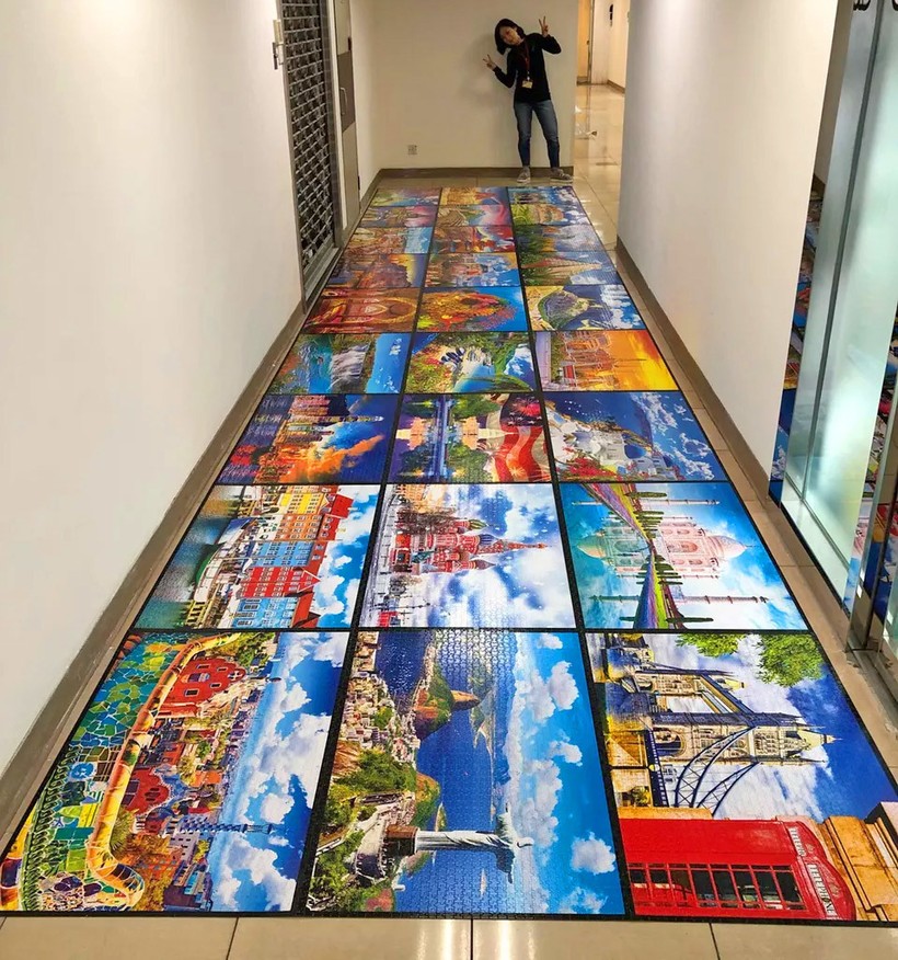 Гигантская головоломка появилась на прилавках недавно: ее выпустила компания Kodak. Производители уверяют, что это самое лучшее качество печати, которое когда-либо было на пазлах. Состоит пазл из 51 300 деталей, и если его собрать, то им вполне можно выстелить пол в комнате: получится конструкция длиной 8,6 метра и шириной 1,9 метра. Весит головоломка больше восемнадцати килограммов.