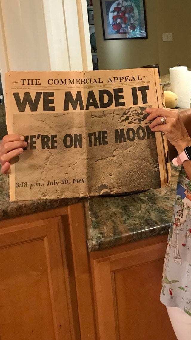 Еще одна бабушка сохранила газету о высадке человека на Луну. Она была случайно найдена внуками.