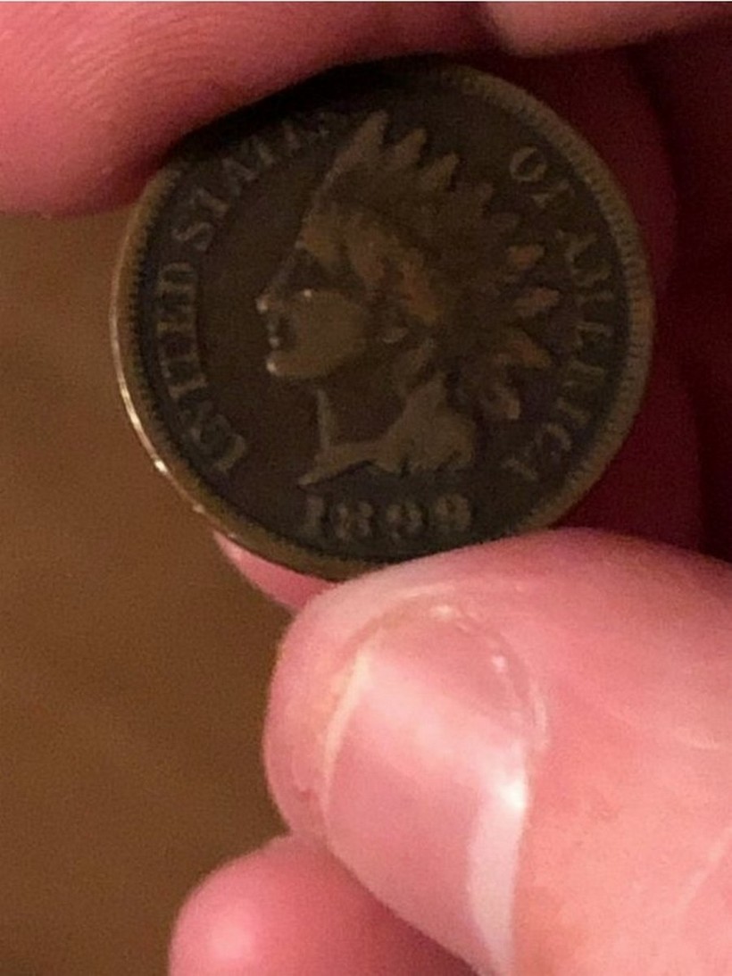 А на прогулке с собакой была найдена пенни 1899 года, видимо, монету потерял тоже любитель длительных прогулок с питомцем.