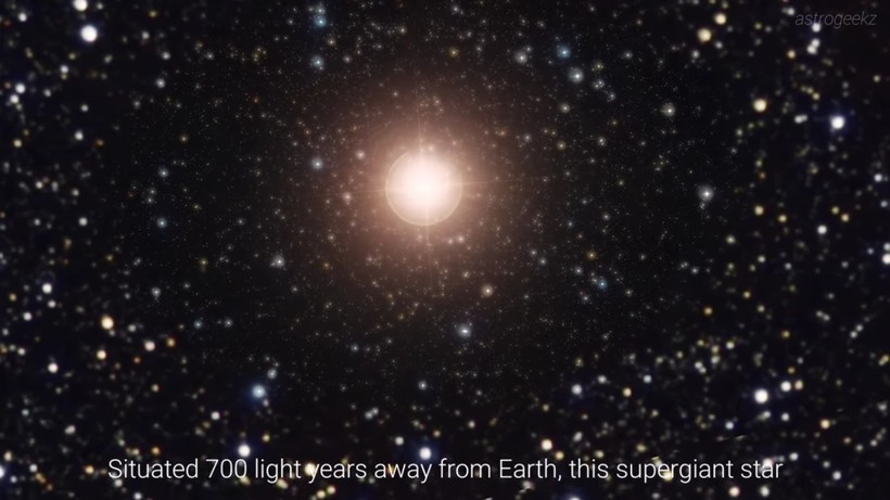 Бетельгейзе — звезда сверхгигант в созвездии Ориона, которая считается одной из самых ярких на ночном небе. Она больше нашего Солнца в 1000 раз, разглядеть которое на фоне огромной Бетельгейзе то же самое, что увидеть крошечное государство Катар на карте мира. Однако наше Солнце намного старше. Ему около 4,5 миллиардов лет, в то время как красному гиганту всего 10-12 миллионов. Несмотря на юный возраст, Бетельгейзе пророчат «скорую» смерть через 100 000 лет, что в космических понятиях недолго. Ученые создали видеомакет того, как будет выглядеть взрыв звезды.
