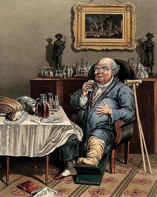 В 18 веке Британия пережила эпидемию подагры, настолько сильную, что это изменило ход истории. Известная как «болезнь королей», подагра резко распространилась в 18-м веке по одной важной причине: британские богачи вели все более роскошную жизнь, которая способствовала этой болезни.