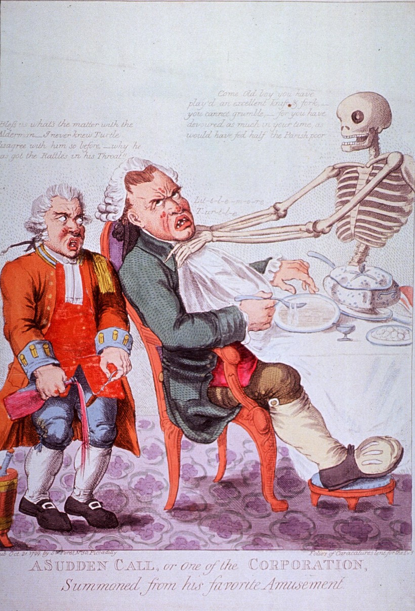 По мере того как расширяющаяся Британская империя позволяла торговцам все больше богатеть и доставлять новые деликатесы аристократам, алкоголь, сахар и мясо становились постоянными блюдами в меню. Импорт сахара из стран Карибского бассейна способствовал массовому росту потребления подслащенных продуктов питания. Так, зажиточные англичане «проели» себе дорогу в эпидемию подагры.