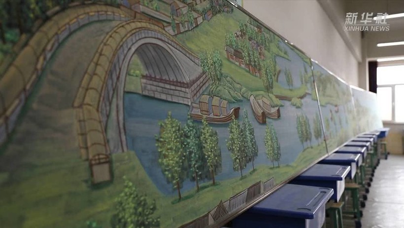 Чжао удалось вписать около шестисот героев, среди которых есть священники, фермеры, торговцы, лодочники. Как и в оригинале, тут присутствуют десятки животных, деревьев и жилых домов. Сначала учитель набросал картину белым мелом, а затем раскрасил цветным. К сожалению, шедевр обычного учителя не будет храниться сотни лет, ведь доски понадобятся для учебы школьникам.