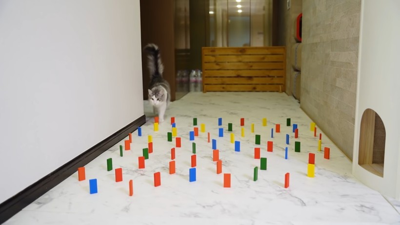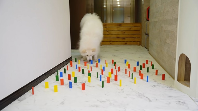Корейский блогер Дженни Чен ведет канал MilkiBoki на YouTube, где рассказывает о своих питомцах — коте и собаке, а также об их реакциях в различных ситуациях. На видео, представленном ниже, автор решил провести небольшой эксперимент с фишками домино. Он расчистил коридор и расставил там фишки так, чтобы получилась преграда. Сначала молодой человек использовал 70 штук, потом 140 и в конце 200. Он запускал в коридор кота, и каждый раз грациозное и красивое животное проходило так, чтобы не уронить ни одной детальки. При этом коту они не были интересны — важно было просто пройти мимо. Когда пришла очередь собаки, то суматошный питомец начал обнюхивать домино, ронять их на пол и пытаться взять в зубы. Он перепрыгивал и пробегал по домино, роняя их и наводя хаос. Опыт лишний раз доказывает, насколько разные эти звери.