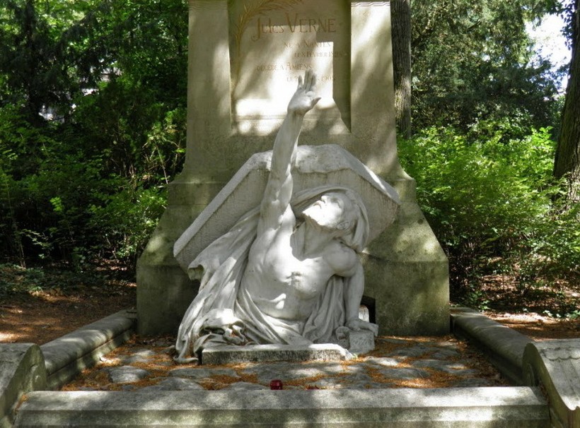 Тогда специалисты принялись искать информацию на памятнике, установленном на могиле писателя. После своей смерти в 1905 году Жюль Верн был похоронен на кладбище в городе Амьен, а необычное надгробие на его могиле тоже дало подсказку тем, кто искал загадочный клад. Скульптура на месте захоронения писателя изображает знаменитого фантаста восстающим из могилы. Немного жутковато, но такой памятник был завещан самим писателем. Поразительно, но детальное исследование скульптуры и параметров надгробия позволило ученым определить координаты места нахождения капсулы времени.