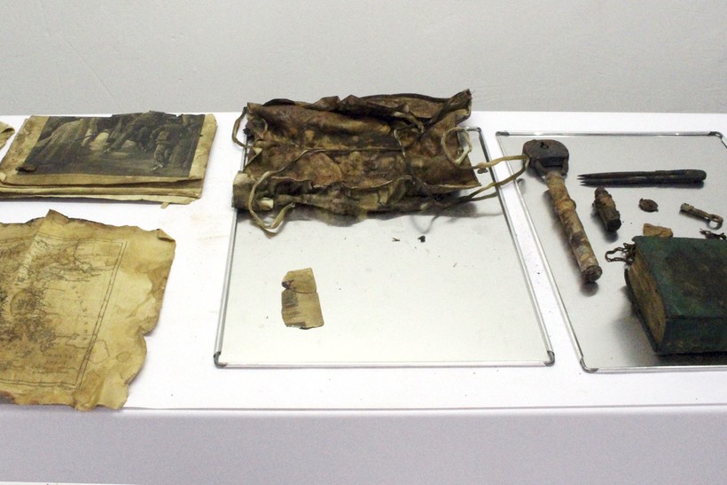 Внутри оказались различные предметы: монета эпохи Средневековья, ключ неизвестно от чего, телескоп, кольцо, кожаная папка с документами. Кроме того, здесь были найдены книга и вырезка из газеты с заметкой о Нелли Блай, знаменитой в своей время американке, совершившей кругосветное путешествие менее чем за 80 дней. В ящике также находились карты и различные пометки, содержащие непонятные знаки. Что они обозначают, еще предстоит выяснить. Ясно одно: Жюль Верн оставил не одну загадку и разгадать их будет не так просто.