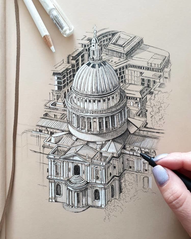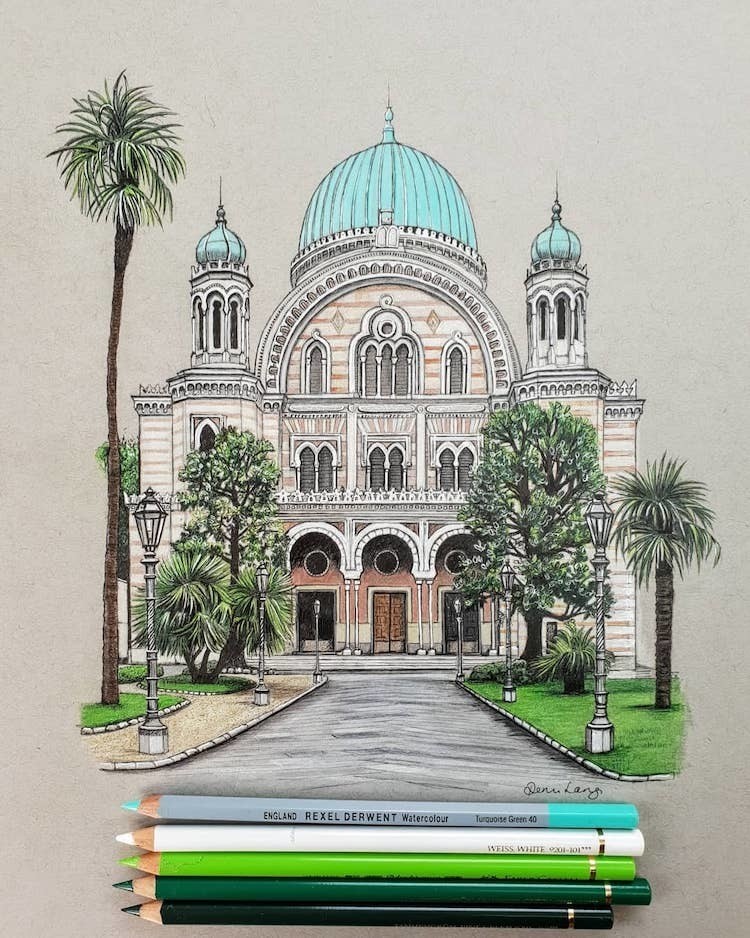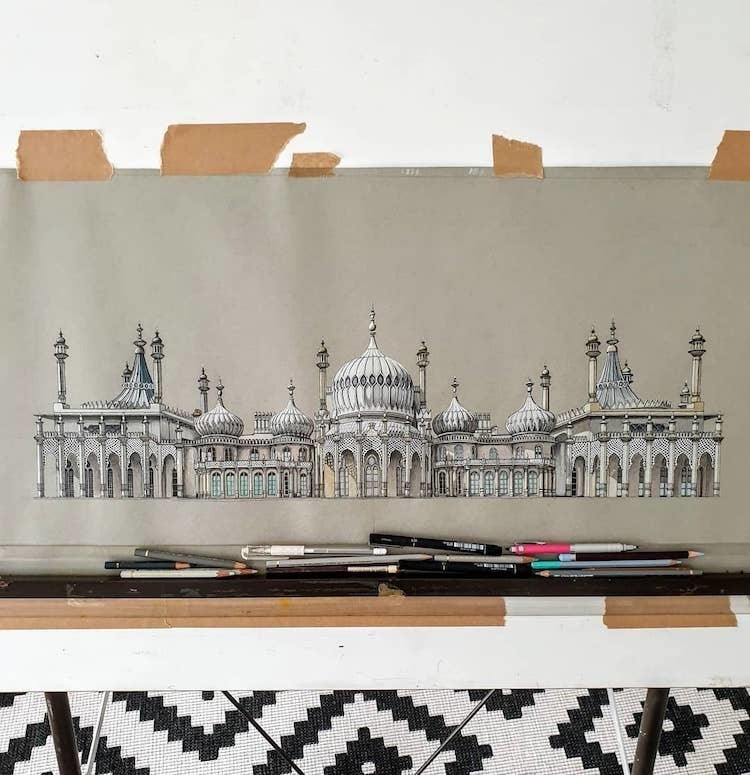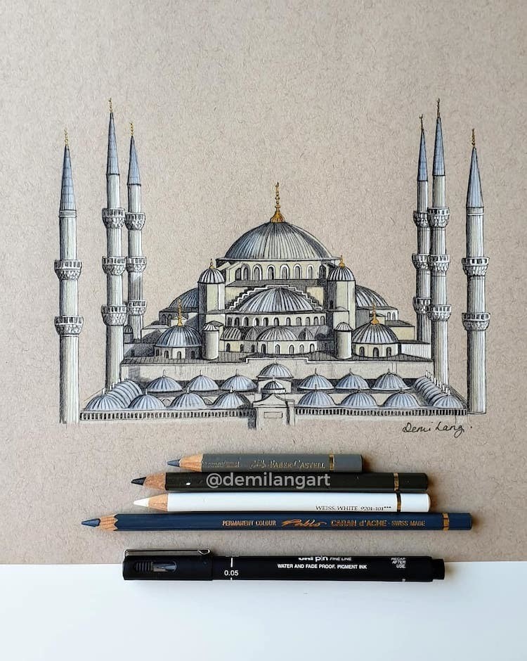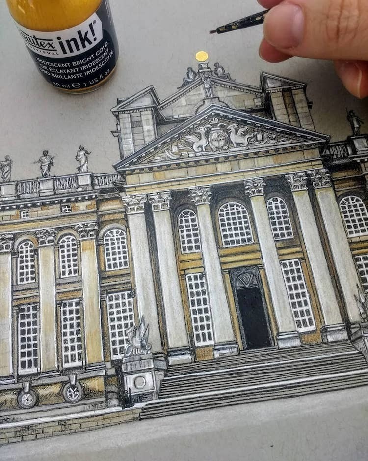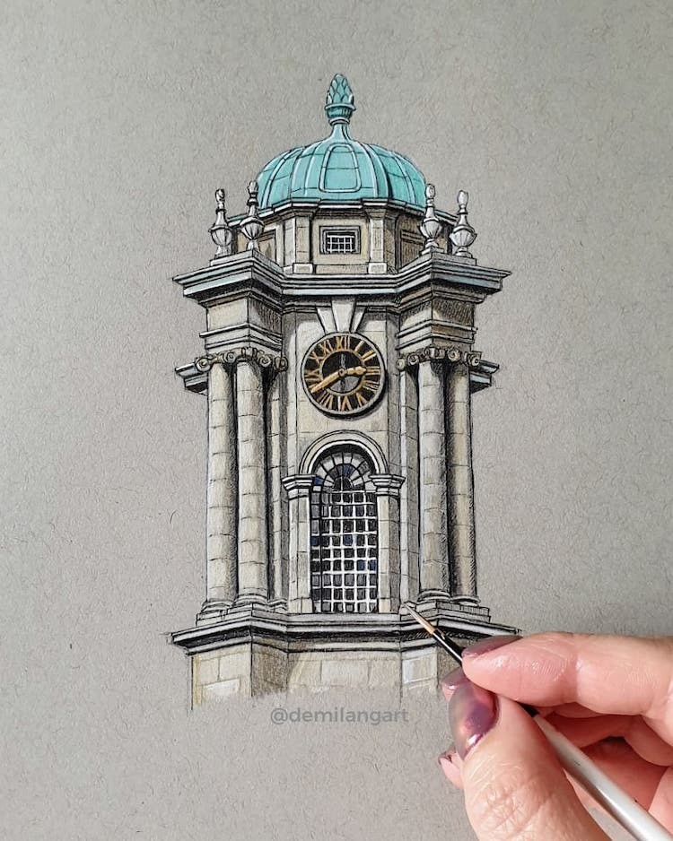 Британская художница Дэми Ланг специализируется на архитектурных зарисовках, которые настолько точны и детальны, что трудно поверить в то, что их автор — самоучка. Более пятнадцати лет Ланг создает свои невероятные рисунки, используя индийские чернила, ручки и карандаши. Результатом становятся потрясающие комбинированные изображения, рассказывающие истории как местной, так и зарубежной архитектуры.