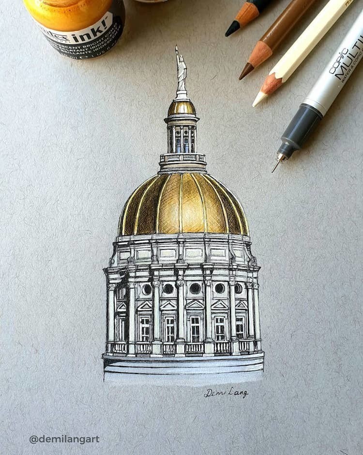 Страсть Дэми к рисованию и ее любовь в четко структурированным объектам легко объединились в настоящие шедевры. Художница постоянно пребывает в поиске новых мест для вдохновения и изображения. Она признается, что в восторге от того, что создают архитекторы и строители по всему миру, и всегда интересуется историей появления того или иного чудесного произведения архитектурного искусства.