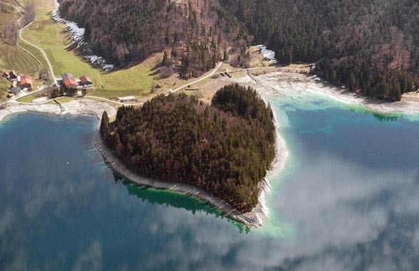 Сердцевидный остров посреди озера Вальхензе, Германия