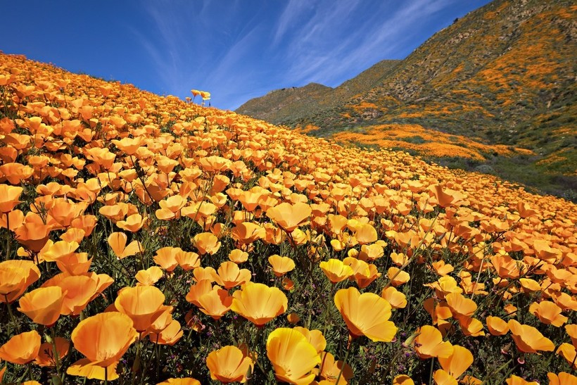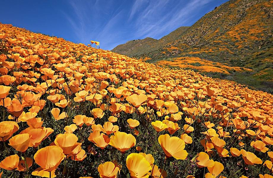 Яркие оранжевые маки отчетливо видны среди солнечных ферм и зеленых пастбищ штата. К тому же в этом сезоне в Калифорнии выпало большее количество осадков в сравнении с другими годами, а это значит, что цветы будут жить и цвести дольше обычного, что делает это зрелище еще более особенным.