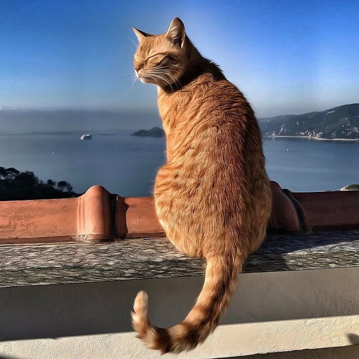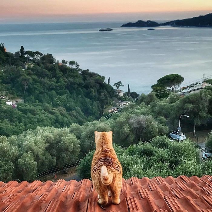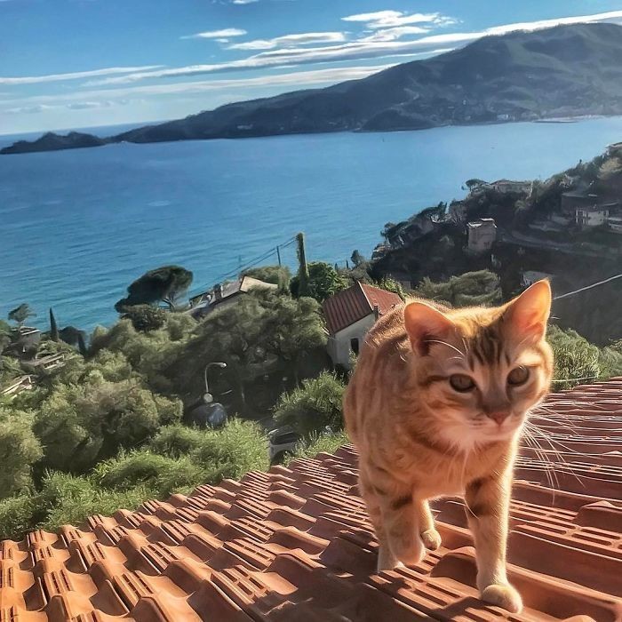 Алессандра снимает своих питомцев практически везде. Поэтому на ее снимках коты наслаждаются солнцем на крыше, грызут вкусняшки или играют друг с другом или соседскими котами. Честно сказать, этим котикам можно только позавидовать: кто бы отказался позагорать на крыше с видом на бирюзовое море?