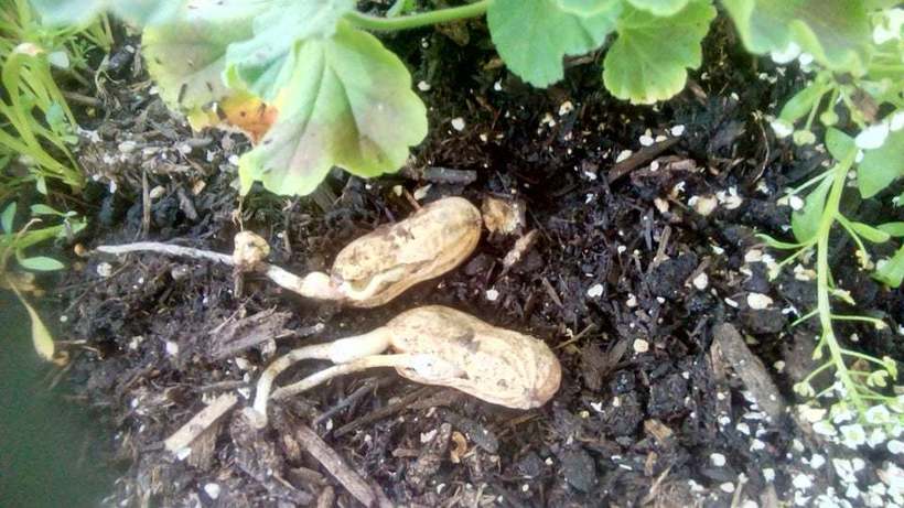 Белка спрятала орешки в горшок с цветами, а теперь они проросли.