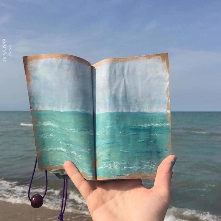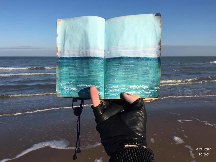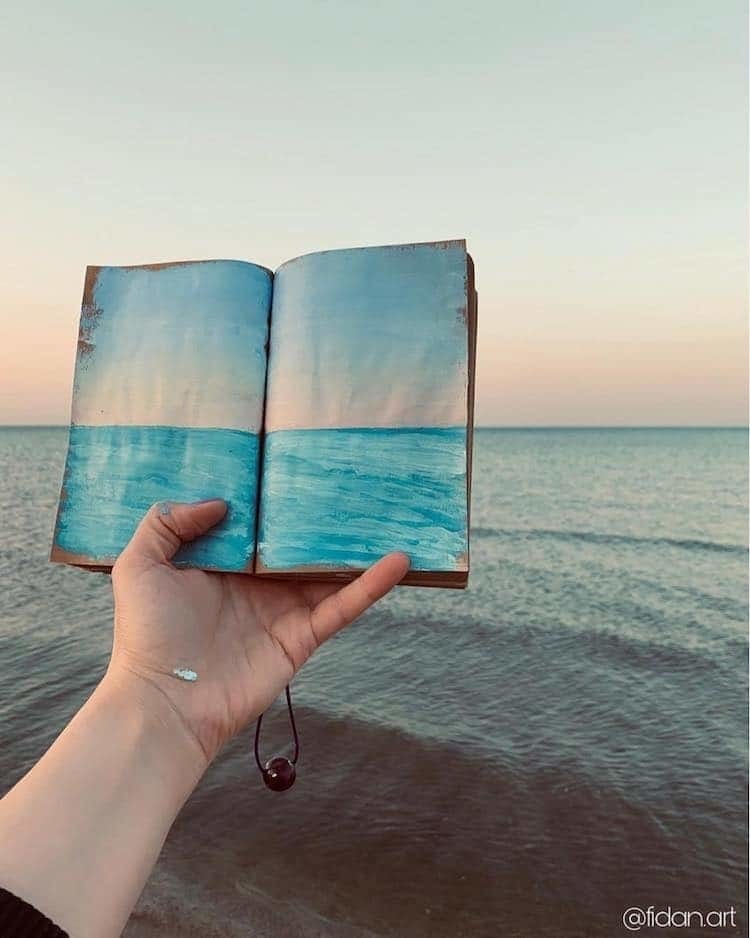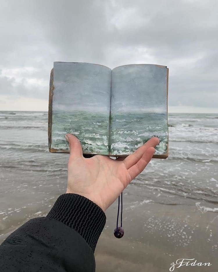 Независимо от погоды, азербайджанский художник Фидан Заман отправляется на побережье Каспийского моря, чтобы нарисовать его волны и небо над ними. От темных, мутных вод и серых облаков, до бирюзовой воды и залитых солнцем горизонтов — парень стремится запечатлеть красоту берегов в разные сезоны года. Каждый морской пейзаж оживает в его альбоме для рисования, а затем становится частью реального пейзажа, когда Заман вписывает его в свои фотографии береговых линий.