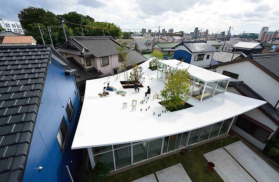 Работая в густонаселенных районах, архитекторы должны проявлять изобретательность и творческий подход к размещению и оформлению площади. Если же они трудятся над собственным офисом, то могут позволить своему воображению разгуляться вволю. Поэтому, когда знаменитое архитектурное бюро Studio Velocity занялось созданием собственного офиса в японской префектуре Айти, сотрудники нацелились на вершину в прямом смысле этого слова. Установив необычную изогнутую крышу для своего деревянного офиса, они создали на ней потрясающее пространство для работы и отдыха.