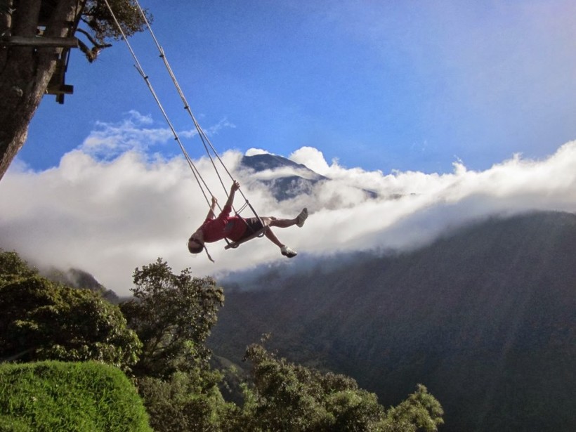 "Качели на краю света" находятся на высоте 2660 метров над уровнем моря. Длинные веревки и палка-перекладина – вот и все сооружение. Под ногами – крутой обрыв, перед глазами – великолепный вид на горы и вулкан Тунгурауа. Конструкция не радует своей надежностью, однако от этого интерес туристов к данному «аттракциону» нисколько не ослабевает.