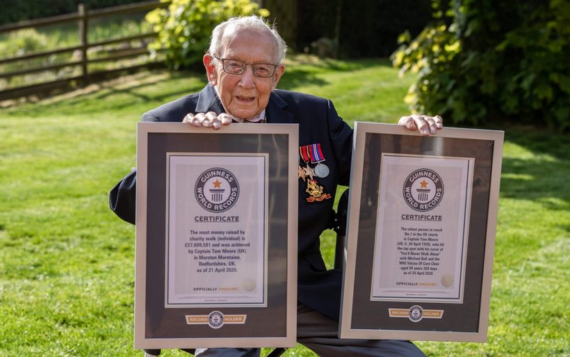 С помощью своих детей он организовал сбор средств для врачей, борющихся с эпидемией. Несмотря на трудности в ходьбе, мужчина обошел с помощью ходунков свой сад целых сто раз. Сумма сбора для медицинских работников достигла более 30 миллионов евро. Все денежные средства национальный герой перечислил на финансирование здравоохранения.